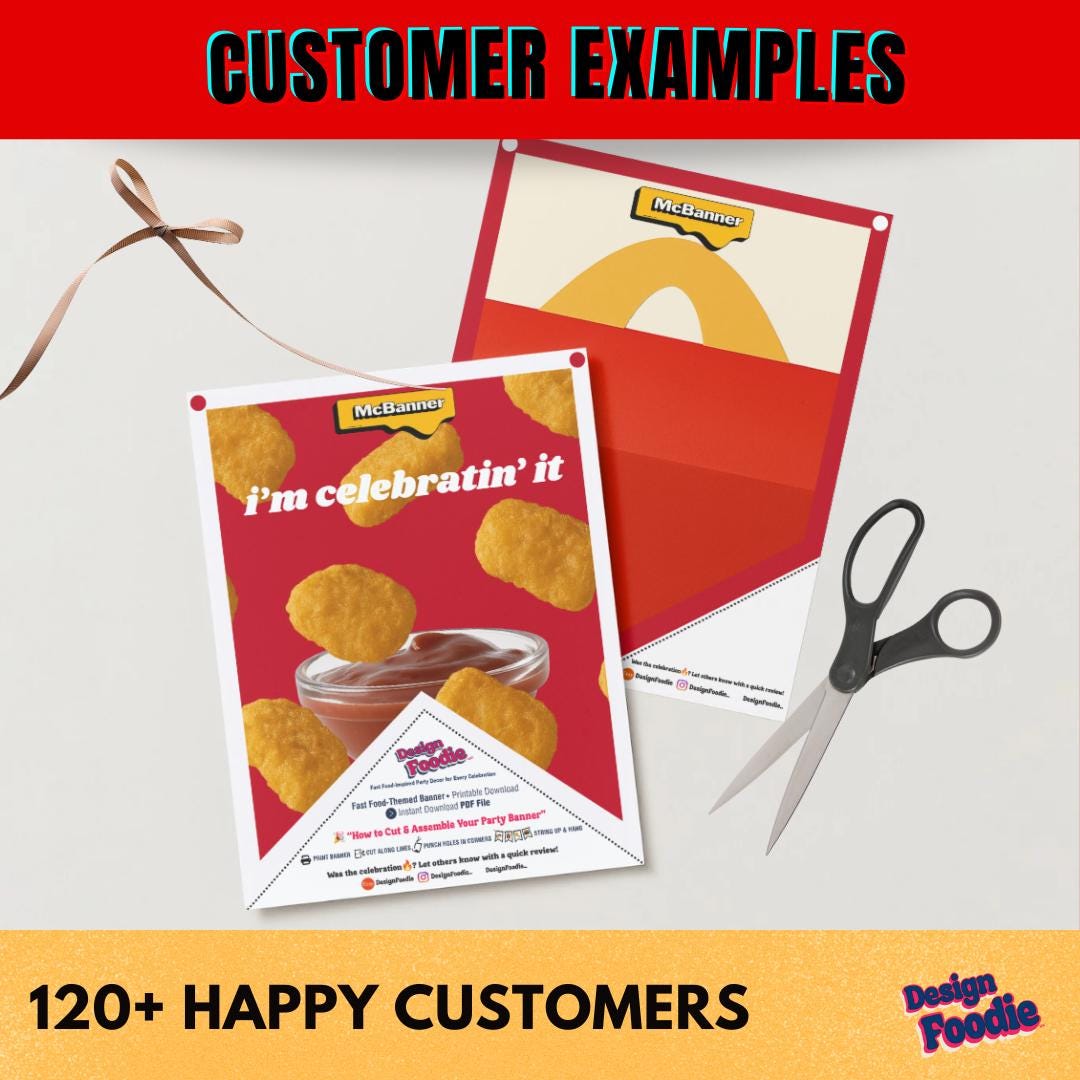 â Why Youâll Love This Design â Fun & iconic McDonaldâsâstyle aesthetic â Fully customizable â unlimited personal use â Instant access (no more waiting 24â48 hours!) â Canva template makes editing SUPER easy â High-resolution graphics for professional results â Designed by Design-Foodie, the #1 fast-food party shop đđĽ