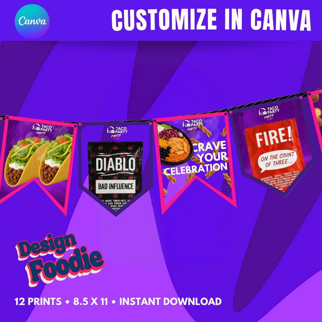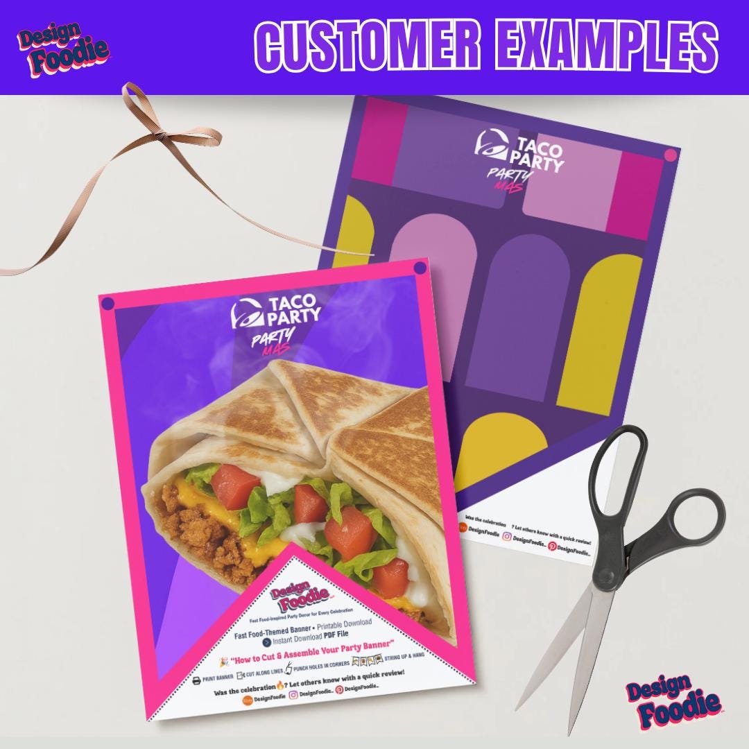 ✨ What You’ll Get You’ll receive immediate access to: ✔ Editable Canva Template (customize name + text) ✔ Editable Taco Bell Logo included on Banner (customize name + text) ✔ High-Resolution Export Options: PNG, JPG, and PDF ✔ 8.5×11 printer-friendly panels for easy home printing ✔ Step-by-step instructions for editing + printing ✔ Instant download — no waiting, no turnaround time