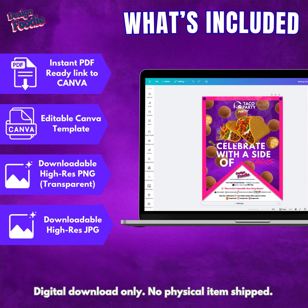 📌 Important Notes This is a digital product — no physical banner will be shipped Editable only in Canva (free account works perfectly) Our designs are parody-inspired and not affiliated with Taco Bell or any restaurant brand