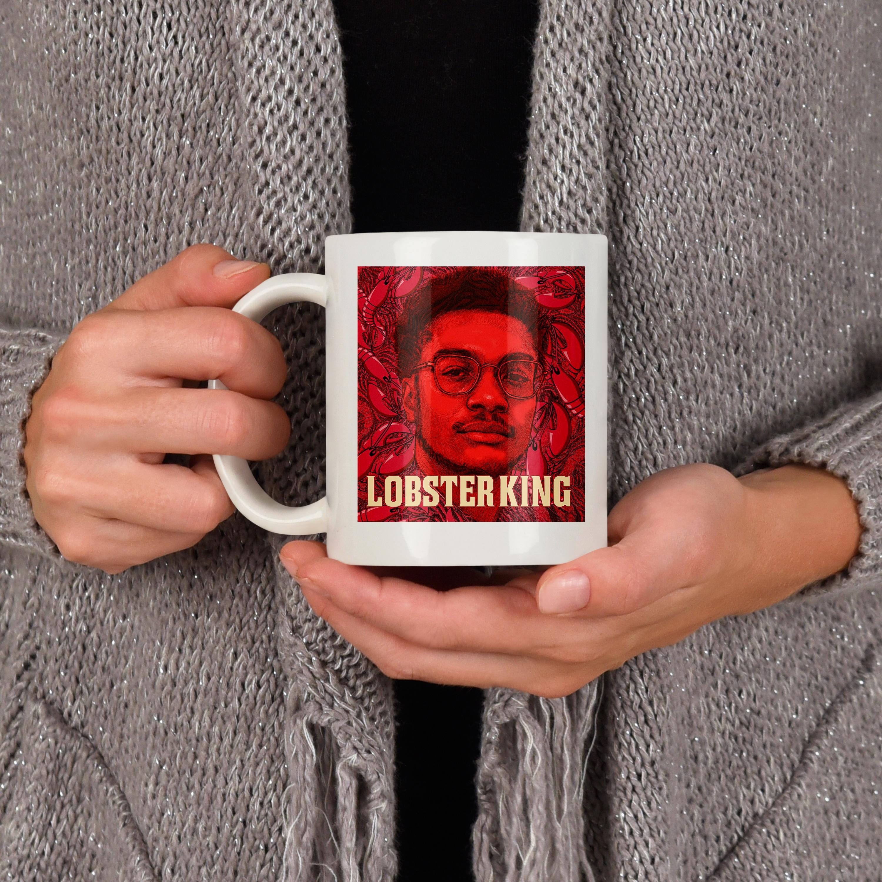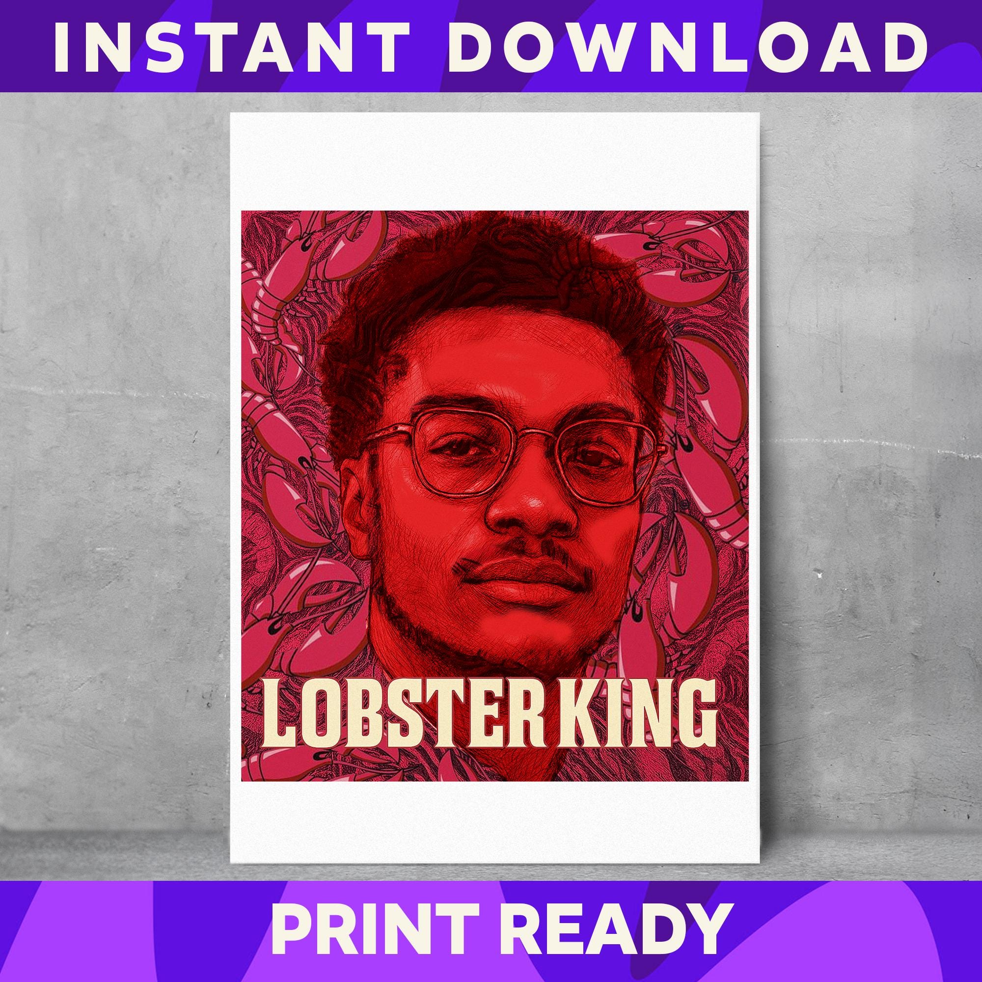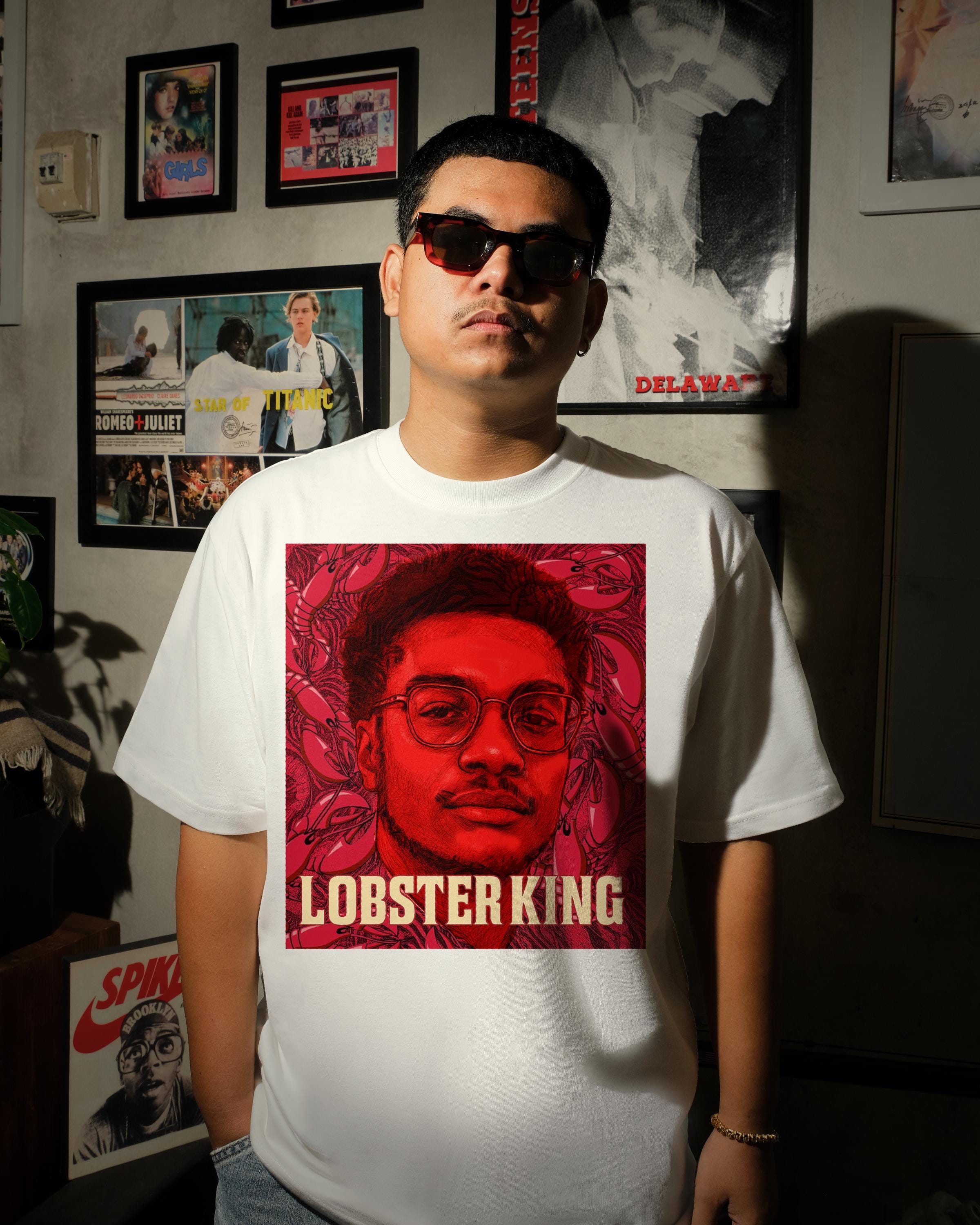 🦞 STYLE: Tiger King-inspired with a bold monochrome lobster pattern, retro block lettering, and a striking red pop-art aesthetic.