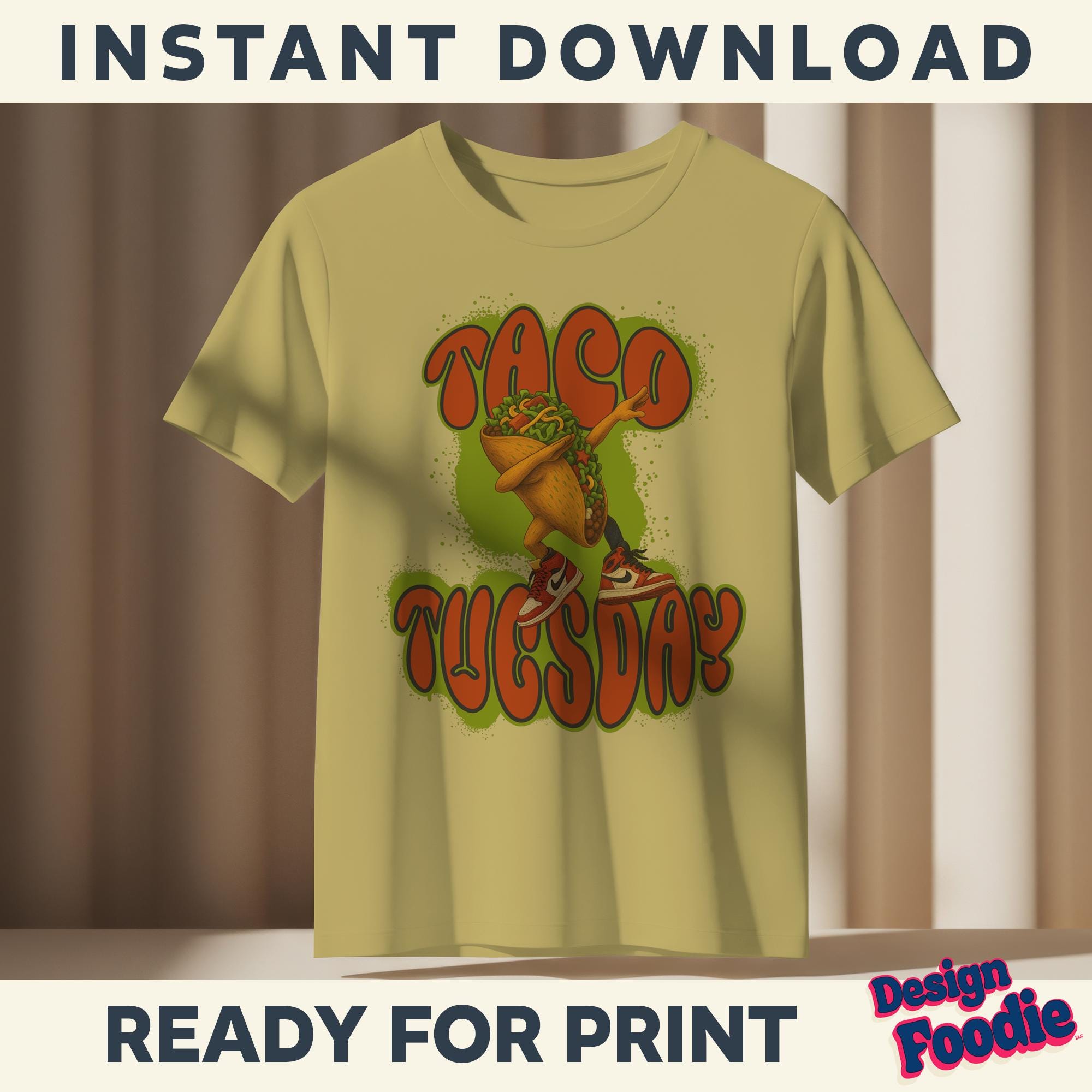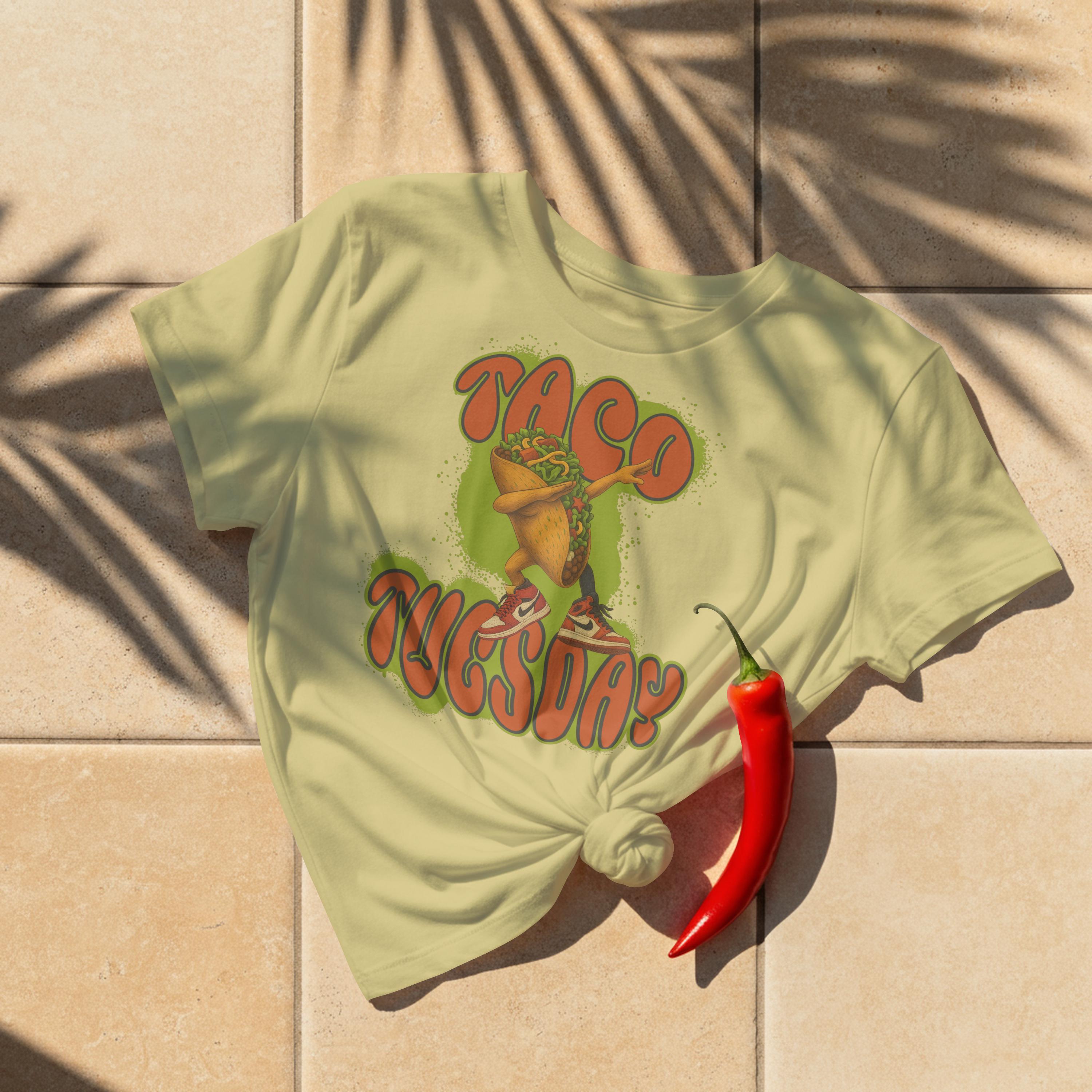 Bring the flavor and the swagger to your wardrobe with this bold Taco Tuesday tee! Featuring an original illustration of a dabbing taco rocking Air Jordan 1s, this shirt is perfect for taco lovers, sneakerheads, and anyone who likes their fashion with a side of spice. 🌮🔥