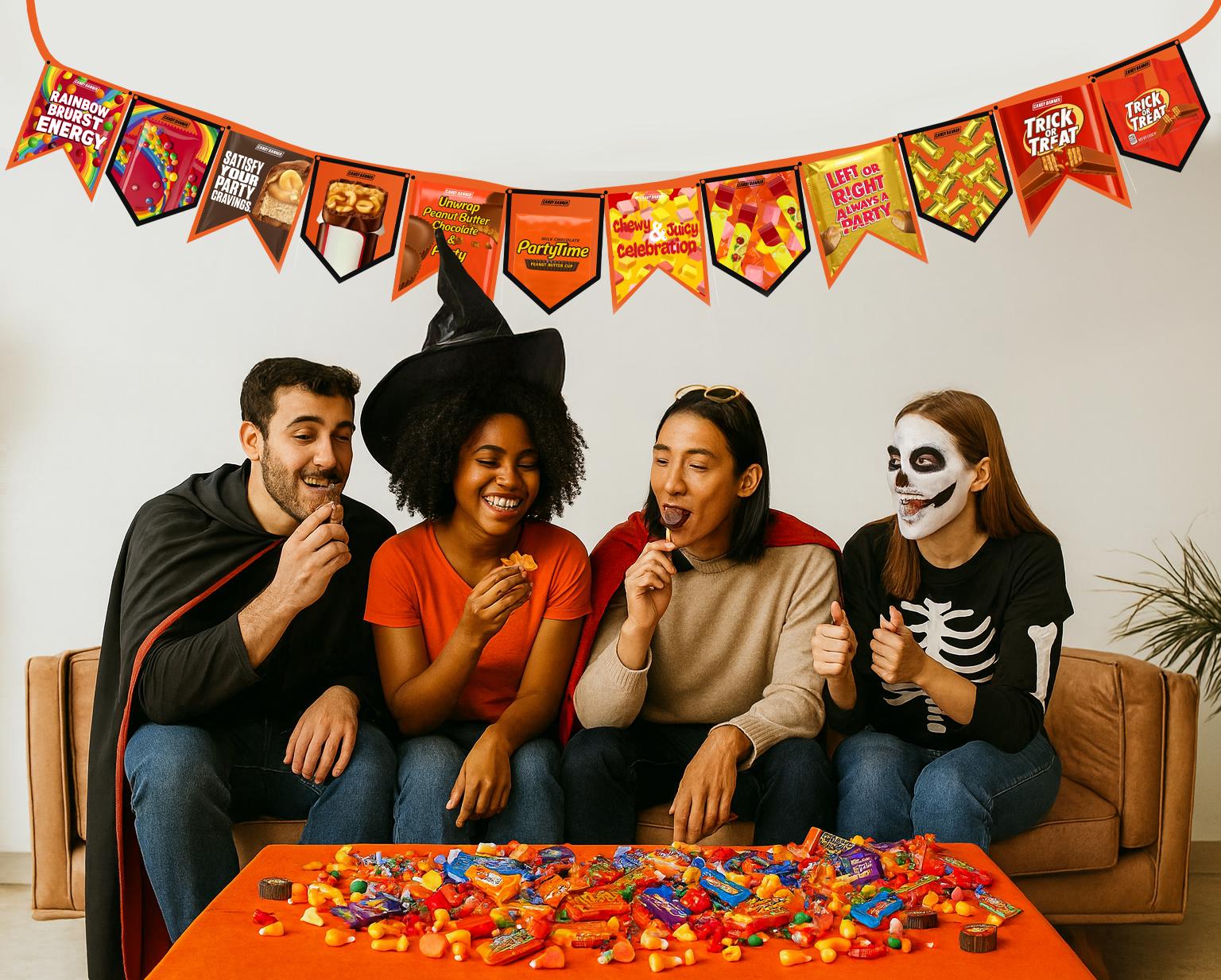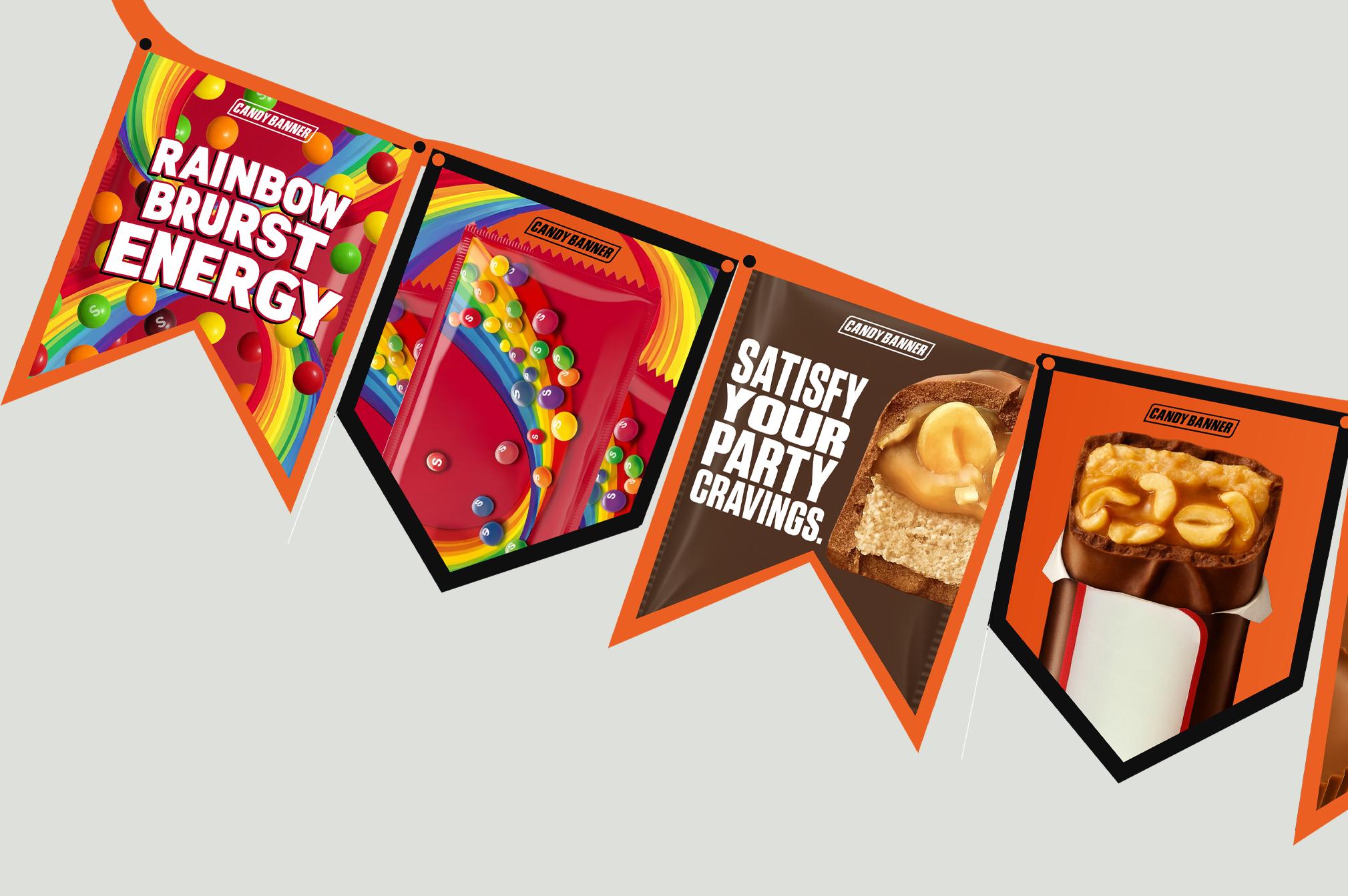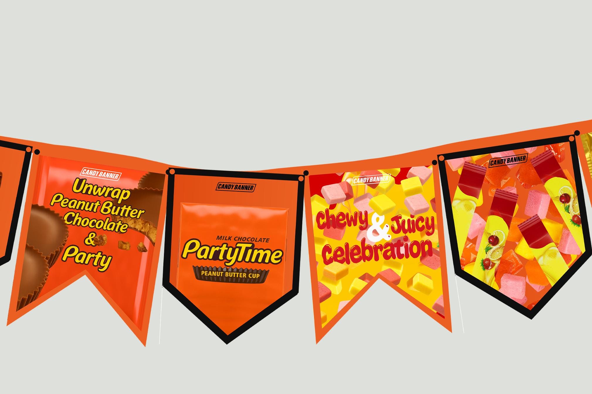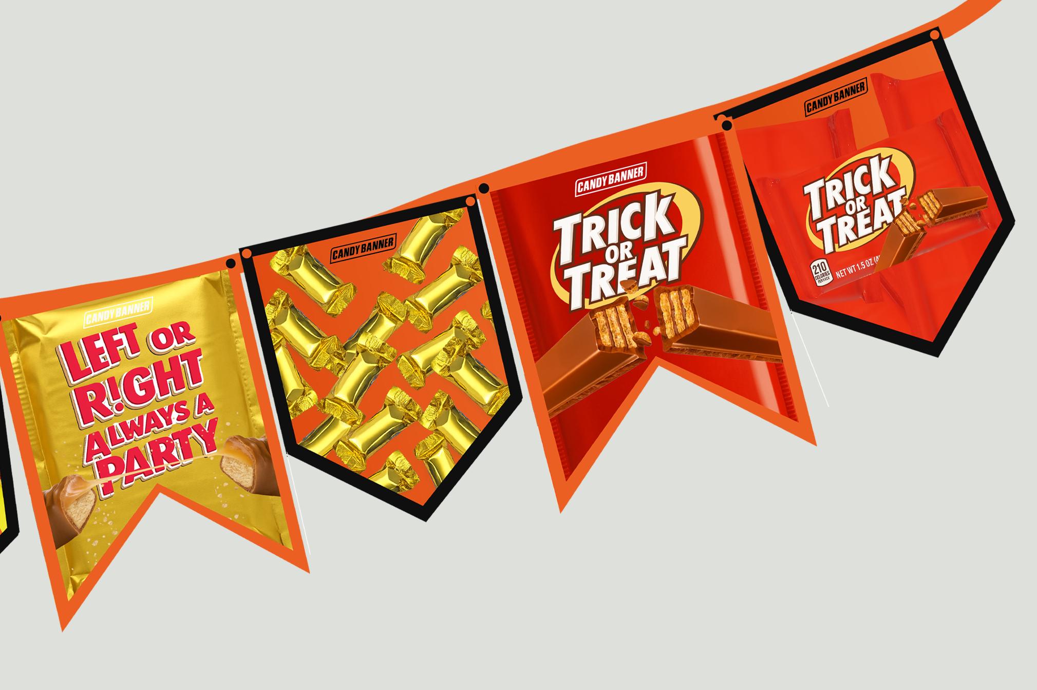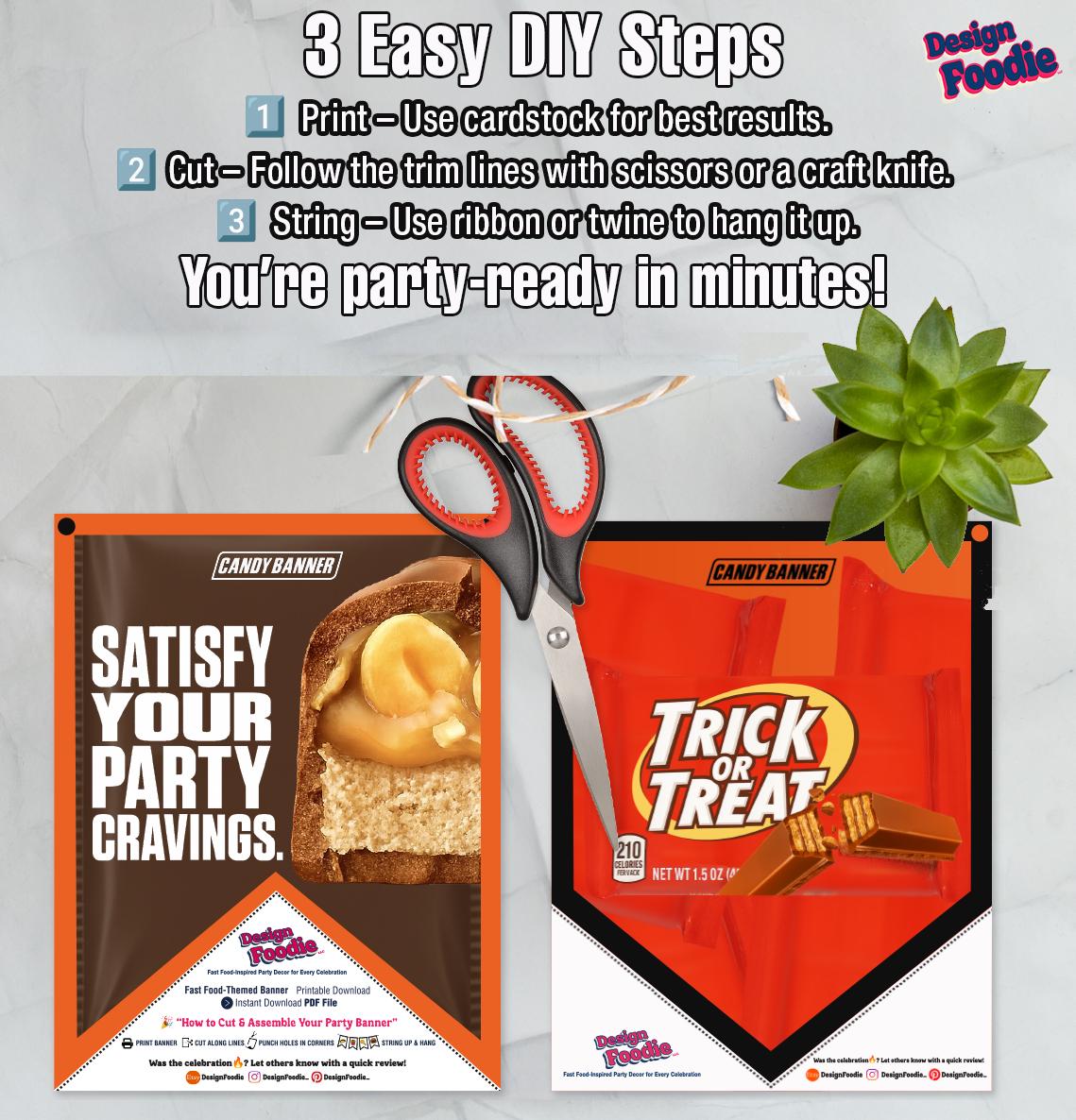 🎉 This banner balances Halloween energy (bright, bold candy pieces) with a timeless design that works for birthdays and celebrations all year long.