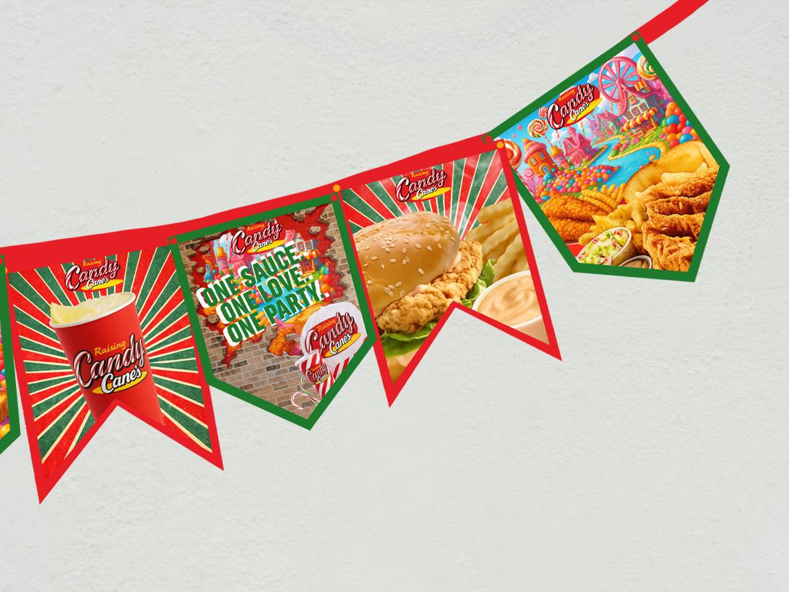🎨 DESIGN DETAILS Bold Christmas reds, candy cane stripes, and a festive take on the Raising Cane’s aesthetic. Perfect for holiday fun!