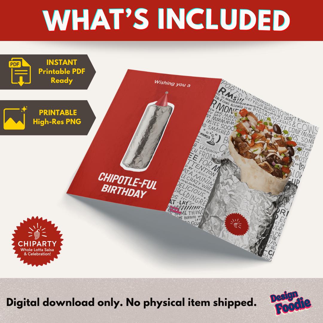 ⭐ WHY YOU’LL LOVE IT ✨ Fast-food parody style — fun, bold, eye-catching ✨ Perfect for Chipotle lovers ✨ Print at home or send digitally ✨ Budget-friendly, high-impact card ✨ Last-minute party lifesaver
