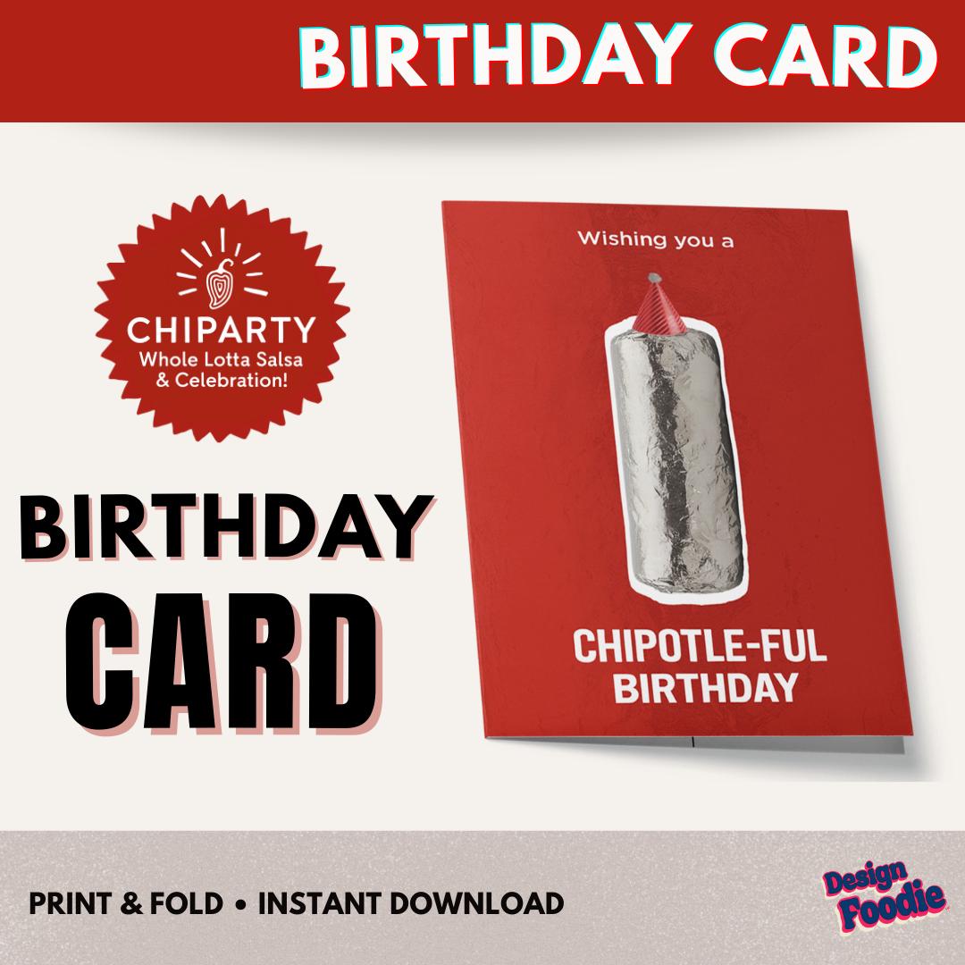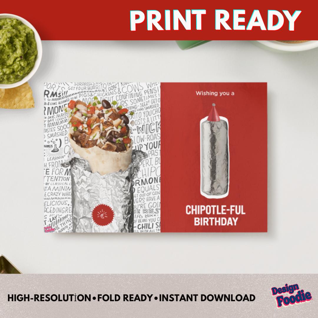 🎉 Wishing Them a CHI-POTLE-FUL Birthday! 🌯 Give your favorite burrito lover a birthday card they’ll actually laugh at. This Chipotle-inspired greeting card brings bold fast-food vibes, high-quality design, and instant download convenience — perfect for last-minute gifting!