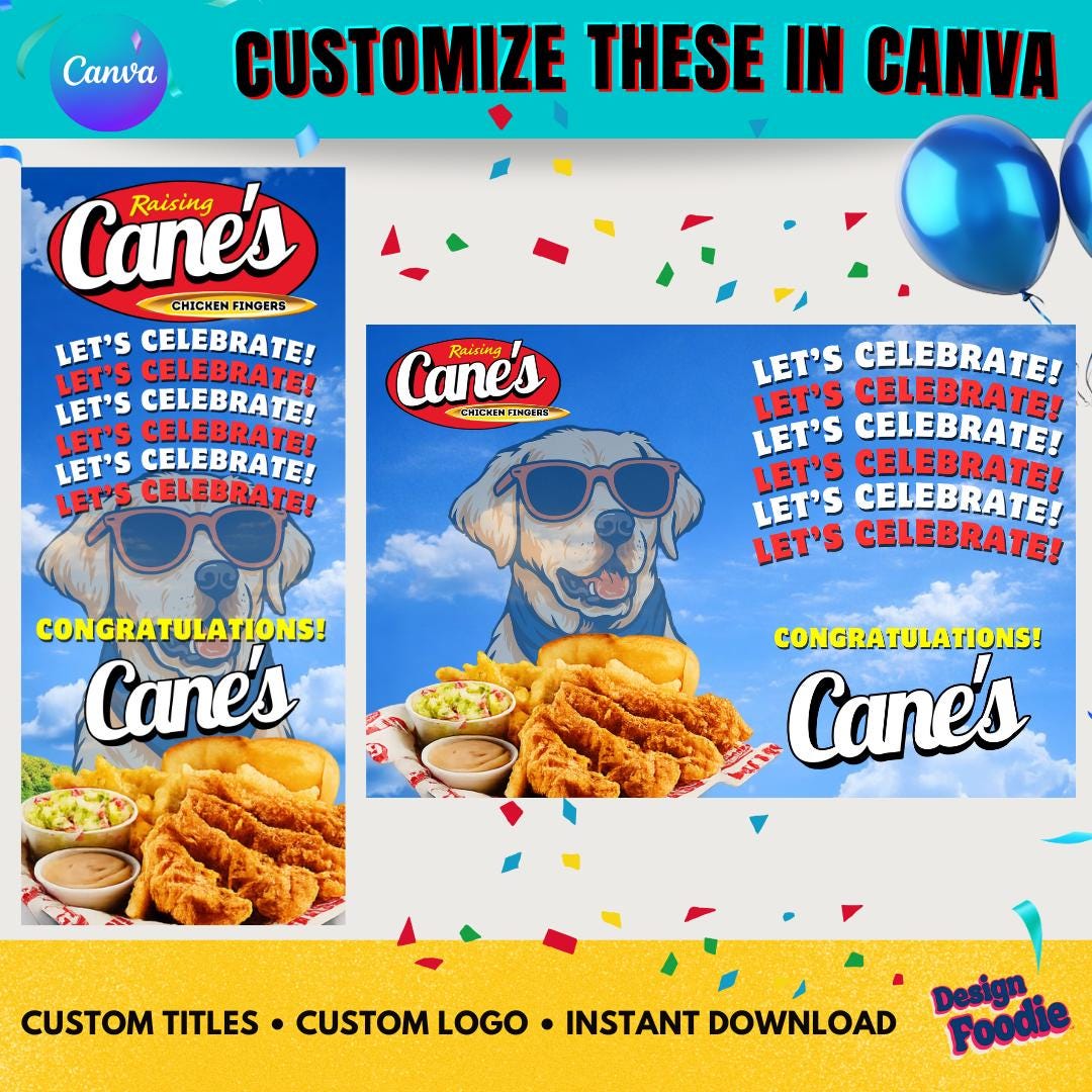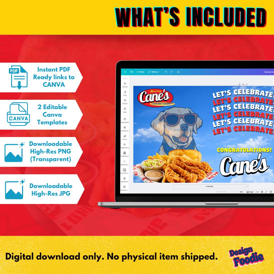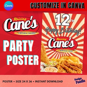 🔥 Throw a Raising Cane’s-style party that’s bold, fun, and customized by YOU! 🔥 Create your own fast-food–inspired party decor instantly with this editable Canva template. Add names, event titles, schools, or fun phrases — the possibilities are endless!