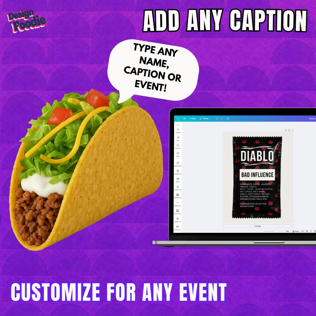 🔥 WANT ALL 5 SAUCES? This DIABLO design is also available in our Full Taco Sauce Bundle, which includes: ✔ VERDE ✔ MILD ✔ HOT ✔ FIRE ✔ DIABLO