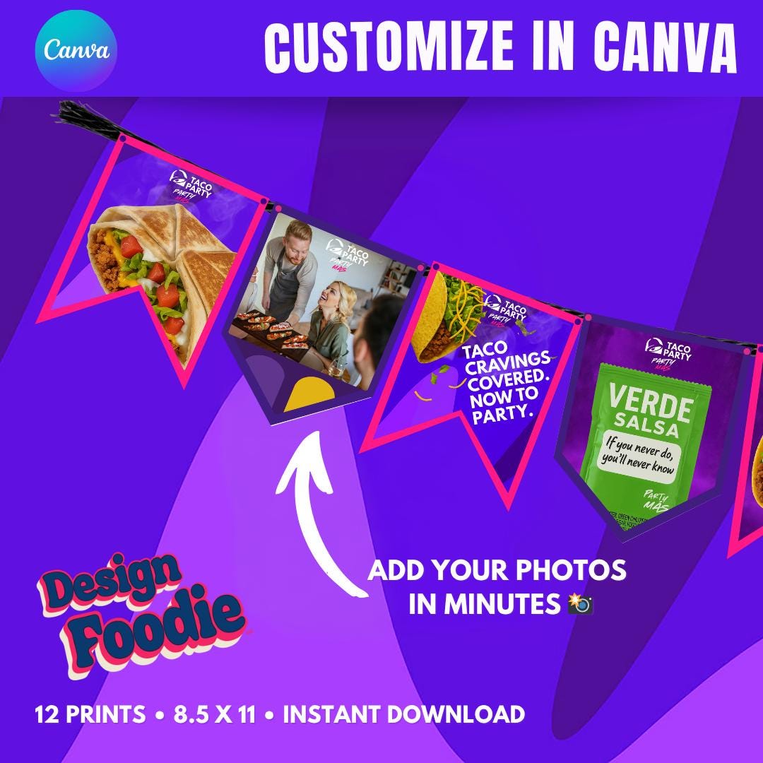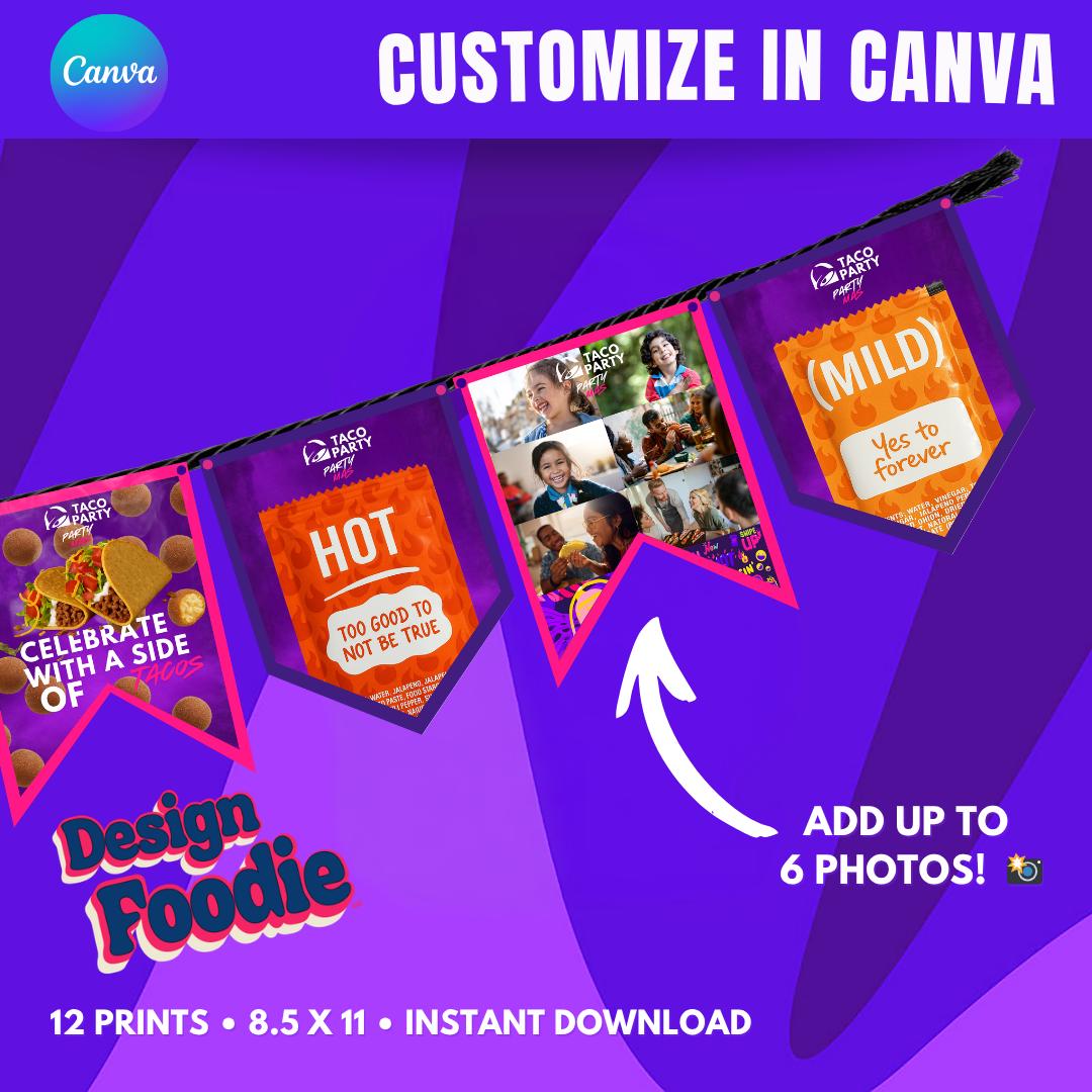 🌮 TACO PARTY PHOTO BANNER – FULLY CUSTOMIZABLE ADD YOUR PHOTOS IN MINUTES 📸