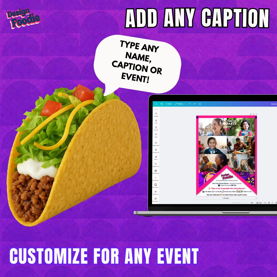 Don’t settle for generic party decor — make it personal. 🌮🔥 Turn your party into a full experience with this fast food–inspired taco banner that lets you: