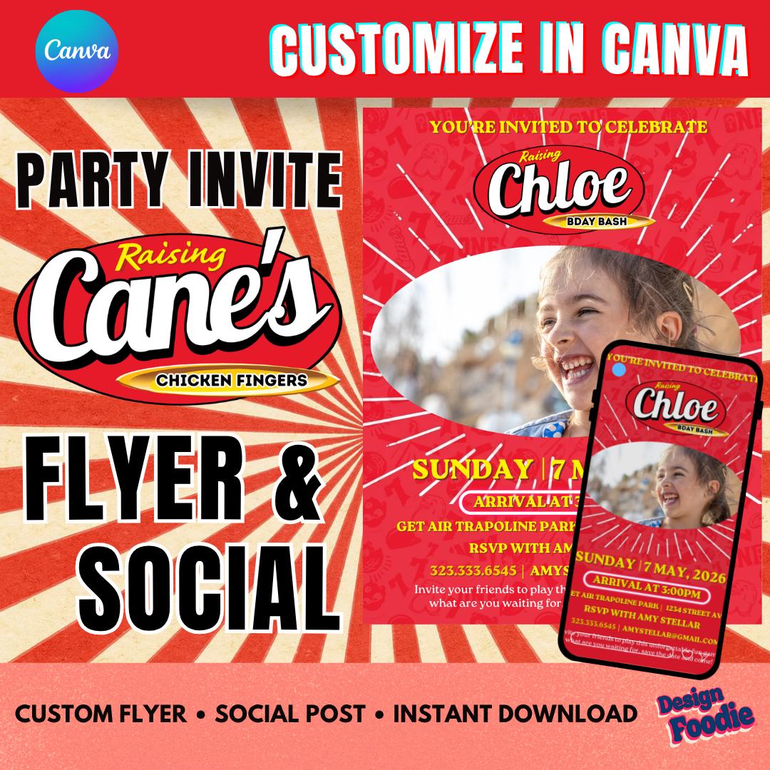 Raising Cane’s Party Invitation • Custom Photo • Fast Food Theme (Canva Template)